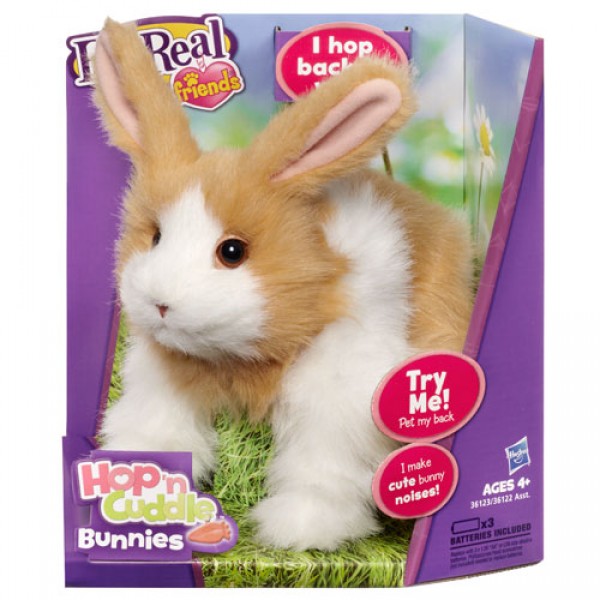 Этот смешной бежевый кролик с белыми лапками и мордочкой умеет весело скакать и издавать различные звуки. Он очень пушистый с мягким мехом, который так и хочется погладить. Проведите рукой по его спинке и кролик начнет скакать и весело пыхтеть.